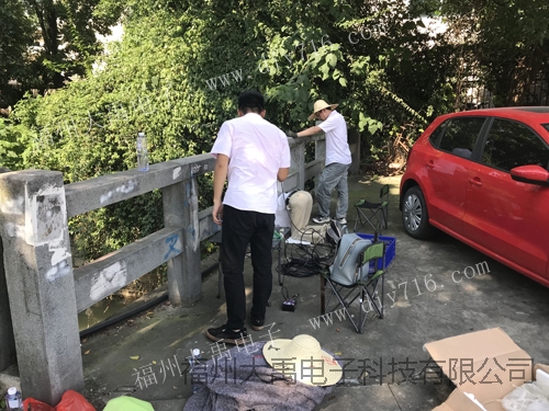 6月28日,大禹電子工程師們來到福州金山橘園州工業區里面的內河,進行單波束聲學多普勒流速剖面儀的測量試驗。